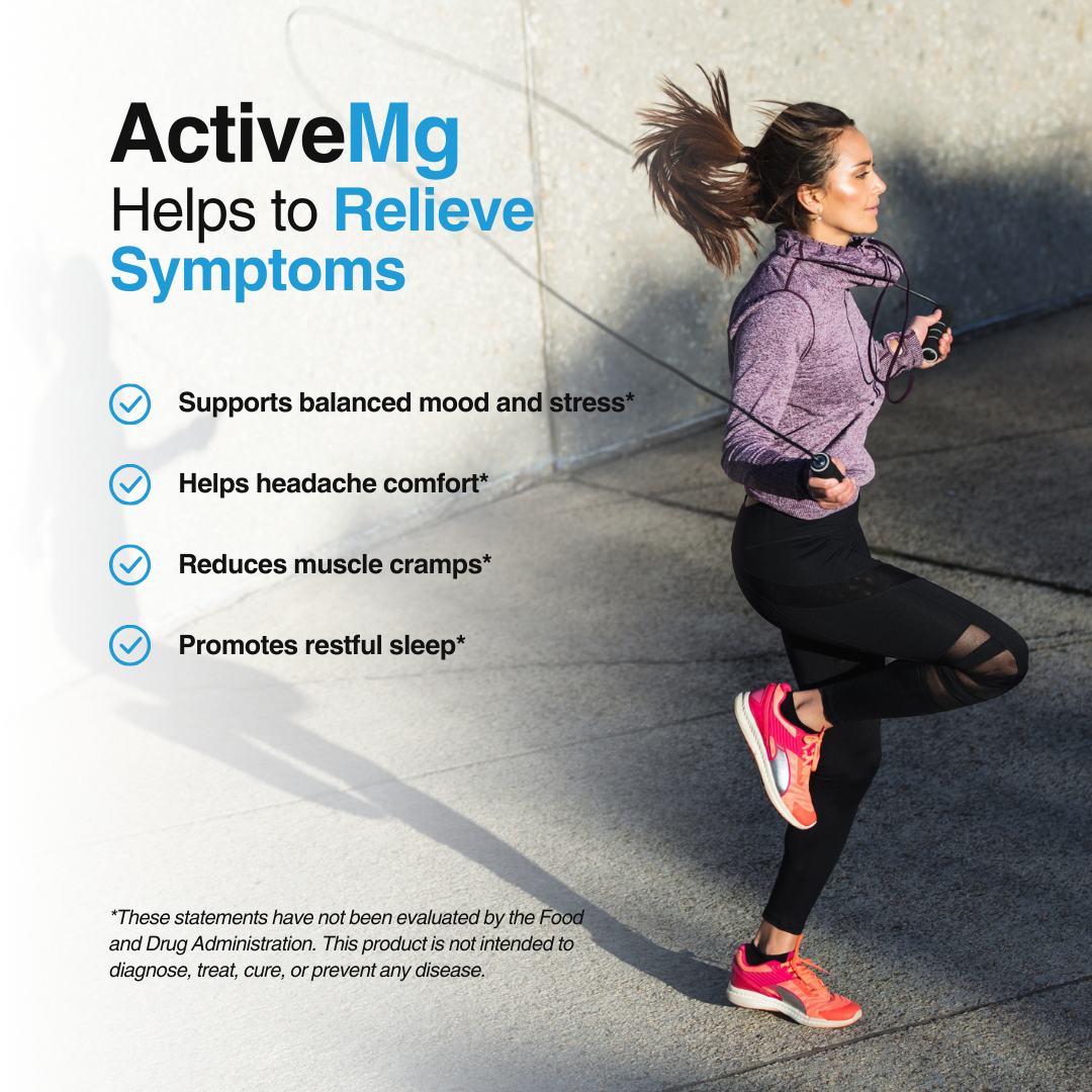 Active Mg is the only form of Magnesium that has worked for me . I have taken several different types and brands and even given myself Magnesium injections. It helps my muscles and decreases the frequency and severity of migraines.