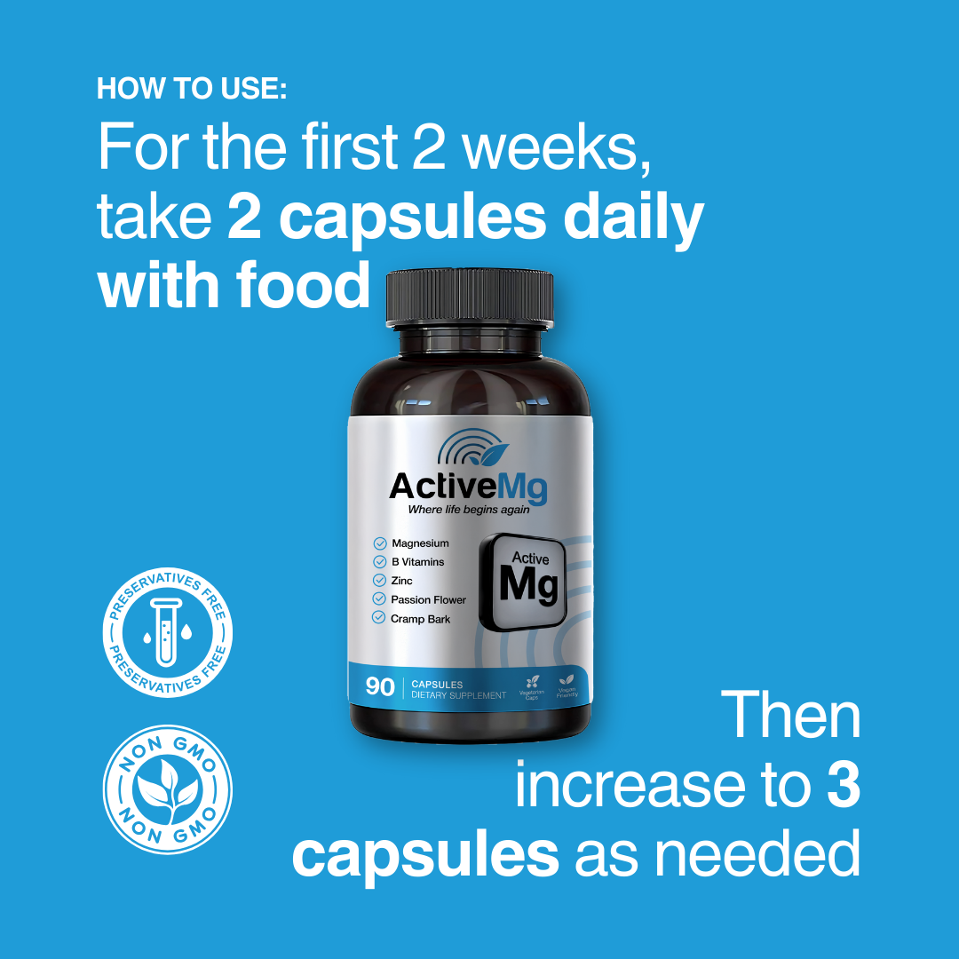 Active Mg has been a life changer for me… No more restless legs on overseas flights, on public transport or in bed at night. Flying was torture, if I could have chopped my legs off I would have. The moved constantly and the pain was unbelievable. Active Mg takes all of that away….. it’s amazingly effective… I have been taking Active Mg for 9 to 10 years…. Just 2 capsules per day….. keeps my legs calm…. Thank You